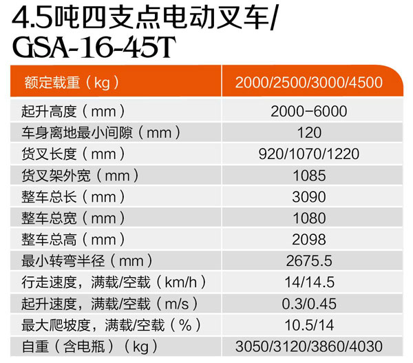 4.5噸四支點電動叉車GSA-16-45T 作者:admin | 日期:2019-01-03 14:08:15 | 人氣:2472 上一篇:四支點平衡重電動叉車GSA-16-30T 下一篇:2.5噸電動牽引車GSA-17-25T